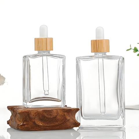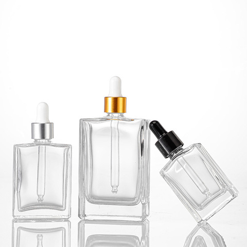 ขวดน้ำมันหอมระเหยทรงสี่เหลี่ยมแบนขวดน้ำหอมเหลวโทนเนอร์ปรับแต่งได้ขวดหยดน้ำขนาด2ออนซ์