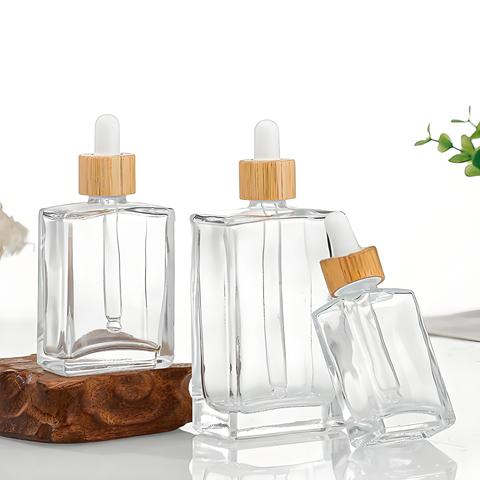 ขวดแก้วหยดน้ำหอมระเหยทรงสี่เหลี่ยมแบนน้ำหอมเหลวโทนเนอร์ปรับแต่งได้